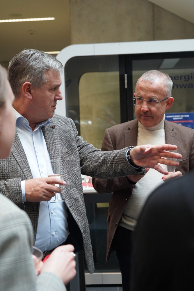 Nach dem offiziellen Teil folgte ein lockeres Get-Together mit Häppchen und Getränken. In entspannter Atmosphäre nutzten Studentinnen und Studenten und Kanzleivertreter die Gelegenheit, ins Gespräch zu kommen und Fragen zu Berufseinstieg, Praktika oder Karrierewegen zu stellen.
